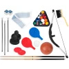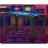 5 ігор, повний набір ігрових аксесуарів, міцні ігрові стільниці, легка збірка, миттєва зміна гри, регульовані ніжки, основа з ніжками + двостороння стільниця + більярдний стіл складається в один стіл, що економить місце.