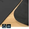 На звороті килимок виготовлений з гнучкої гуми, що забезпечує відмінне зчеплення килимка з поверхнею. Обидва матеріали, які використовуються у виробництві, не мають запаху та приємні для шкіри, навіть схильної до алергії. Загальна вага мату становить 3,18кг, гарантує, що килимок не буде випинатися чи скручуватися на закінченнях килимка.
