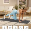Разом з килимком ви отримаєте зручний ремінець для транспортування, завдяки якому вам буде зручно носити килимок і брати його з собою на заняття йогою. Залишаючись на темі йоги - завдяки більшим розмірам килимка ви отримаєте більше особистого простору під час групових занять, що значно підвищить ваш комфорт. Після виконання вправ ви можете легко освіжити килимок злегка вологою ганчіркою. Водонепроникний матеріал PU не вбирає вологу, що робить килимок більш практичним і гігієнічним.