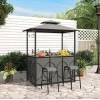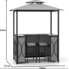 Центральним елементом набору є альтанка з дахом, яка ідеально підходить для встановлення гриля чи організації барної зони на свіжому повітрі. Спеціальні бокові полиці забезпечують зручний доступ до аксесуарів для приготування їжі, спецій або посуду, а верхній J-подібний гачок дозволяє підвісити світильник або вентилятор, створюючи атмосферу затишку навіть у вечірній час. У комплект входять два зручні барні стільці, створені для тривалого сидіння. Вони мають підніжки та сітчасту спинку, яка дихає навіть у спекотну погоду, гарантуючи комфорт під час відпочинку. А ще - вони легко засуваються під барний стіл, заощаджуючи місце, коли не використовуються.