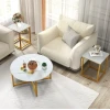 Цей столовий набір для вітальні дарує вам не лише естетичне задоволення, а й щедру функціональність. Простора стільниця круглого столика діаметром 80см легко вміщує усе необхідне - від напоїв і закусок до книг, декоративних аксесуарів чи ігрових консолей. А два додаткові квадратні столики (40 x 40см) додають ще більше зручного простору - ідеального для розміщення пультів, чашок чи навіть кімнатних рослин. Такий набір стане центром комфорту вашої вітальні, забезпечуючи максимум зручності без шкоди для стилю.