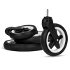 В комплект входять 4 великі позашляхові колеса, що прокачуються, оснащених підшипниками. Це аксесуари, які значно підвищують комфорт використання коляски. Вони надають йому універсальності, роблячи його позашляховим. Передні мають діаметр: 19,50 см, задні: 29,50 см. Завдяки своїй ширині вони полегшать рух коляски м'якими піщаними ділянками. Вони відмінно підходять як на бетонних тротуарах, так і за містом, дозволяючи вільно пересуватися різними типами доріг.