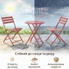 Усі елементи виготовлені зі сталі та покриті порошковою фарбою, що забезпечує стійкість до вологи, сонця та щоденного використання. Складний механізм дозволяє швидко скласти стіл і стільці, звільнивши простір або прибравши комплект на зберігання поза сезоном.