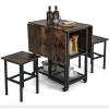 Якщо вам потрібен обідній стіл, який поєднує в собі компактність, мобільність та універсальність - зустрічайте комплект меблів Costway Design. Стиль Loft у поєднанні з функціональністю робить цей розкладний стіл зі стільцями ідеальним варіантом для сучасних квартир, невеликих кухонь, студій або робочих куточків. Від розкладання панелей до прихованого зберігання табуретів - кожна деталь продумана до дрібниць для зручності та естетики.