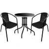 Опис Комплект садових меблів 4Points Arno-2 круглий стіл ?60см з чорною скляною стільницею/сірий обідок, Чорний