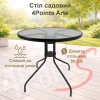 До комплекту входить круглий стіл діаметром 80 см зі стільницею із загартованого скла, стійкого до подряпин, вологи та перепадів температур. Металевий каркас забезпечує стабільність і надійність конструкції.