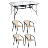 Чотири крісла з плетеного штучного ротанга мають зручну ергономічну форму з підлокітниками, а металевий каркас забезпечує стабільність і довгий термін служби. Набір чудово підходить як для сімейних обідів, так і для прийому гостей.