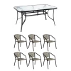 Шість крісел з плетеного штучного ротанга мають зручну ергономічну форму з підлокітниками, а металевий каркас забезпечує стабільність і довгий термін служби. Набір чудово підходить як для сімейних обідів, так і для прийому гостей.