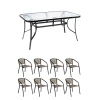 Вісім крісел з плетеного штучного ротанга мають зручну ергономічну форму з підлокітниками, а металевий каркас забезпечує стабільність і довгий термін служби. Набір чудово підходить як для сімейних обідів, так і для прийому гостей.