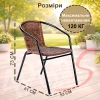 Крісла виконані з плетеного штучного ротангу, який стійкий до вологи та сонячного випромінювання, добре пропускає повітря й забезпечує комфорт навіть у спекотну погоду. Ергономічна форма спинки та підлокітників забезпечує зручну посадку навіть при тривалому сидінні.