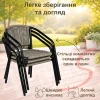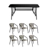 Шість крісел з плетеного штучного ротанга мають зручну ергономічну форму з підлокітниками, а металевий каркас забезпечує стабільність і довгий термін служби. Набір чудово підходить як для сімейних обідів, так і для прийому гостей.