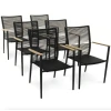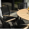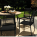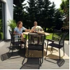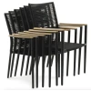 Стільці Acona міцні, стійкі та зручні. Алюмінієва рама, пофарбована в матовий чорний відтінок, надає стільцям елегантний вигляд і легкість, що дозволяє легко переставляти меблі та адаптувати їх розташування до поточних потреб. Комфорт під час сидіння забезпечують спинки та сидіння з техноротангу та текстилю. Це гнучкі матеріали, які підлаштовуються під форму тіла та фігуру і водночас стійкі до деформації. Завдяки використанню техноротангу та тканини Textilene стільці не псуються та не вицвітають навіть під час дощу чи тривалого впливу УФ-променів.