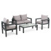 Садові меблі Brescia 2 від Di Volio - це гарантія високої якості і гарного відпочинку в теплі літні дні. Елегантний, мінімалістичний дизайн меблів ідеально підходить практично до будь-якого оформлення саду або тераси. Комплект виготовлений зі стійкого до атмосферних впливів, міцного алюмінієвого каркаса з порошковим покриттям, який гарантує довговічність меблів протягом багатьох років. Набір складається з двох зручних крісел, двомісного дивана і журнального столика з елегантною стільницею з молочного скла. І крісла, і диван укомплектовані м'якими подушками сірого кольору з просоченням.