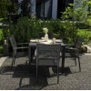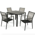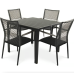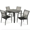 Зробіть свій відкритий простір осередком стилю та комфорту. Carineo - це чотиримісний набір практичних і елегантних садових меблів, завдяки яким ваш простір стане ідеальним місцем для приємного проведення часу у багатьох відношеннях. Комплект меблів для саду 4+1 складається з вишуканого столика та чотирьох зручних стільців, створений, щоб перетворити ваш сад, дачу або терасу на ідеальне місце для відпочинку та зустрічей. Завдяки поєднанню матово-чорного алюмінієвого каркасу та елементів з полівуду, що імітують сіру деревину, Carineo додає простору сучасного вигляду та вишуканості. Завдяки міцним матеріалам меблі Carineo легкі і мобільні, і в той же час міцні і стійкі до погодних умов.