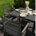 Стільці в наборі Carineo міцні, стійкі і зручні. Алюмінієва рама, пофарбована в матовий чорний відтінок, надає стільцям елегантний вигляд і легкість, завдяки чому меблі легко переставляти і адаптувати їх розташування до поточних потреб. Спинки і сидіння з техноротанга і текстилену забезпечують комфорт під час сидіння . Це гнучкі матеріали, які адаптуються до форми тіла та фігури, і водночас стійкі до деформації. Завдяки використанню техноротангу та тканини Textilene стільці не псуються та не вицвітають навіть під дощем, снігом або тривалим впливом УФ-променів.