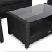Прямокутний журнальний столик з додатковою полицею під стільницею - це практичний предмет меблів, який дозволяє подавати закуски та напої та зручно зберігати аксесуари. Стільниця з полівуду виглядає як натуральна деревина і повністю водостійка. Його гладка поверхня не вбирає бруд, тому його легко підтримувати в чистоті. Конструкція столу виконана з тих же матеріалів, що і інші елементи набору, завдяки чому набір виглядає дуже цілісно.