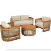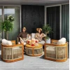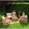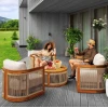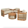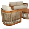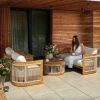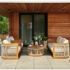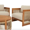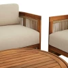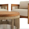 Комплект меблів для тераси Groseto - це не просто садові меблі, а справжній витвір мистецтва. Округлі форми, делікатне мотузкове плетіння та теплий відтінок натуральної деревини створюють унікальний візуальний ефект, який одразу привертає увагу. Такий комплект стане не лише місцем для відпочинку, а й ключовим елементом вашого екстер'єру. Меблі для вулиці виготовлено з масиву акації - міцного, довговічного дерева, що не боїться вологи й сонця. Завдяки сертифікації FSC ви можете бути впевнені в екологічній відповідальності виробництва. Промаслене покриття захищає деревину та підкреслює її природну красу.