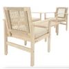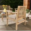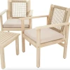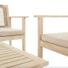 Marata вирізняється витонченим, універсальним стилем, що гармонійно поєднує природну фактуру деревини акації з світлими акцентами сучасного дизайну. Конструкція виконана з високоякісної FSC-акації, що славиться своєю стійкістю до дощу, сонця та змін температур. Особливою деталлю гарнітуру є спинки з щільного поліпропіленового плетіння бежевого кольору, які не лише виглядають стильно, а й чудово підтримують спину. Завдяки своїй пружності, спинки такі зручні, що не потребують додаткових подушок - відпочинок стає справді невимушеним.
