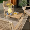 Компактний, але місткий журнальний стіл розміром 75 × 50 × 38см стане зручним місцем для сервірування напоїв, закусок або улюблених книг. Він виготовлений з тієї ж натуральної акації, що й решта елементів гарнітуру, має стабільну конструкцію та тривалий термін експлуатації. Простий і лаконічний у формі, цей стіл додає набору завершеного вигляду та функціональності. Не зволікайте - замовляйте комплект садових меблів Marata вже сьогодні та перетворіть свій відкритий простір на стильне місце зустрічей і відпочинку для кожного дня!