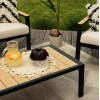 Місткий журнальний столик - незамінний елемент будь-якого комплекту садових меблів. Дозволяє зручно подавати закуски та напої, а також є місце для розміщення улюбленої книги чи ноутбука. Стільниця в наборі Merano виконана з пластику Pollywood бежевого кольору, зовнішній вигляд якого імітує структуру дерева. Крім природного, естетичного зовнішнього вигляду, перевагою є його довговічність, стійкість до води та вологи та відсутність догляду, що робить стільницю легкою легка у використанні та підтримці, що дозволяє вам зосередитися на насолоді своїм простором, а не на його обслуговуванні.