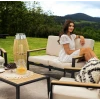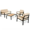 Набір елегантних і функціональних садових меблів Merano від Di Volio - гарантія успішного відпочинку на природі. Меблі для балкону, тераси, дачі представляють собою мінімалістичний сучасний дизайн, заснований на простих геометричних формах і приглушених кольорах. Цей стиль надає меблям універсальний характер і добре пасуватиме до будь-якого інтер'єру. У комплект входить двомісний диван, два крісла з широкими зручними сидіннями та журнальний столик. Стійкі до різних погодних умов матеріали - алюмінієвий каркас з порошковим фарбуванням і полівуд, що імітує дерево, забезпечують довговічність і зберігають естетичний вигляд меблів протягом багатьох років використання. Комплект доповнений бежевими подушками.