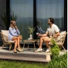 Двомісний балконний комплект Savona - це унікальне поєднання класики та сучасності. В основі меблевої конструкції лежить міцний сталевий каркас, обплетений округлими високоякісними волокнами техноротанга. Ажурне плетіння в ніжному бежевому кольорі додає меблям легкості та надає їм характерний стиль і природний вигляд, натхненний традиційними меблями з ротанга та лози. У комплект входять два зручних крісла з округлою спинкою, подушки кремового кольору і журнальний столик зі скляною стільницею. Завдяки акуратним розмірам комплект меблів Savona чудово підійде не тільки в саду і на терасі, але і на невеликому балконі.