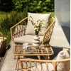 Разом з меблями Savona ви отримаєте подушки для сидінь і спинок крісел. Наповнювач подушок м'який і в той же час стійкий до деформації, що додатково підвищує комфорт використання меблів. Наволочки з тканини з просоченням більш стійкі до плям, тому подушки довше залишатимуться чистими та свіжими. Ніжний, кремовий колір подушок ідеально гармонує з природним відтінком меблів, надаючи комплекту Savona універсальний характер, завдяки чому садові меблі Savona добре вписуються в естетику багатьох модних композицій.