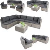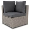 Меблі Torino від Di Volio - це набір м'яких меблів, що ідеально підходять для саду або тераси. Комплект складається з 6 модулів - окремі елементи можна комбінувати по-різному - завдяки цьому, купуючи один комплект меблів, ви легко можете міняти його функціональність і зовнішній вигляд. З елементів можна створити два дивана, диван з кріслами або кутовий диван. Низький столик - це стаціонарний модуль. Меблі Torino поєднують в собі функціональність, довговічність і естетичність. Вони виготовлені з якісного штучного ротанга, закріпленого на металевому каркасі. Модулі укомплектовані м'якими і зручними подушками. Колірна гамма набору - сіро-графітова. Цей набір додасть вашому інтер'єру сучасного і мінімалістичного характеру.