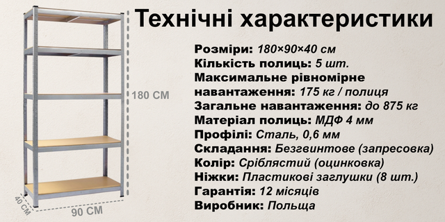 Питання та відповіді (FAQ) Комплект стелажів 2шт. 4Р StrongShelf 180х90х40см оцинкований 5 полиць МДФ загальне навантаження до 875 кг для складу комори гараж