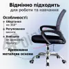 Сітчаста спинка з ергономічною підтримкою — забезпечує вентиляцію та правильне положення спини протягом усього дня.