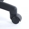 Підлокітники щільно прилягають до всієї конструкції та мають спеціальні додаткові накладки для пом’якшення, щоб користувачі зручно розмістили лікті й не відчували дискомфорту від тертя об матеріали. Крісло обертається, на коліщатках рухається, а висота посадки плавно регулюється підіймальним механізмом. Стильний чорний колір виглядає елегантно, а матеріали легкі у догляді та стійкі в експлуатації. Не варто перейматись, що через декілька років виріб втратить свій початковий вигляд.