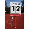 Дві цифри, чітке розташування цифрових пластикових одиниць, латунний дзвіночок, плита зі спіненого ПВХ, прикручена до сталевої рами, двосегментна стійка з синтетичним з'єднувачем, обертання на 360°, фіксується в потрібному положенні регулювальним гвинтом, стійка кругла основа, але досить легка для переміщення