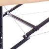 товщина фанери 6 мм, стіл не скрипить і не хитається; зручний великий виріз для особи в столі, що закривається подушечкою, має овальну форму; прогумовані сталеві троси; захист для підлоги на ніжках; міцна тришарова ручка для зручного транспортування столу, виконана з PU; зручні підлокітники з металевими направляючими, що розташовуються з боків столу, мають 1 положення установки; підголівник регулюється в 2-х площинах, його металеві напрямні діаметром 2 см не ламаються, на відміну від пластикових; з протилежного боку замка підголівника є гвинт, який регулює ступінь стиснення замку; підвісна поличка для рук під підголівником регулюється по висоті.