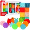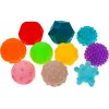 Сенсорна іграшка складається з 8 м'ячів , 8 кубиків і 4 тварин . Блоки різних кольорів мають різні форми на кожній стіні , а тварини мають текстури та числа . Всі елементи опуклі, щоб дитина могла їх відчути на дотик .