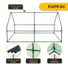 Каркас виготовлений зі сталевих труб діаметром 16 мм з темно-зеленим порошковим покриттям, що забезпечує міцність конструкції та захист від корозії. Накриття з поліетилену щільністю 130 г/м² з УФ-захистом добре пропускає сонячне світло, утримує тепло та захищає рослини від вітру, дощу й перепадів температур.