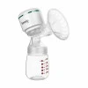 У комплект входять 3 воронки, кришка, USB-кабель, контейнер для зціджування (180 мл), кришка для пляшечки, два пакетики для зберігання грудного молока та бавовняний чохол для зручного транспортування молоковідсмоктувача.