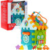 Барвистий складний будиночок з інтерактивними функціями є сенсорною іграшкою, рекомендованою для дітей віком від 18 місяців. Малюки можуть з’єднати загалом 9 блоків, щоб створити будинок із дахом. На кожній стіні є різні міні-іграшки.