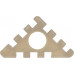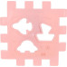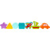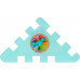 Набір складається з 7 квадратних пазлів і 2 трикутних. На бежевому трикутнику маленьке дзеркальце, а на світло-блакитному трикутнику годинник з рухомими стрілками. На двох квадратних стінах видно сортувальники форм із загальною кількістю 7 блоків.