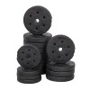 Цементні вантажні дошки покриті пластиком, захищаючи не тільки самі дошки, але і поверхню, на яку ви їх кладете. Якісні затискачі дозволяють стабільно встановлювати ваги на брусі. Одноручні ручки виготовлені з ребристого пластику для ідеального зчеплення. З'єднувач штанги покритий пінопластом, що полегшує обробку.