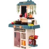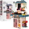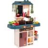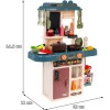 Кухня - іграшка, яку люблять і дівчатка, і хлопчики. Набір, який ми представляємо, призначений для дітей від 3 років. Має звукові та світлові ефекти. Він невеликий за розміром, що важливо в наш час, коли кімнати дітей повні іграшок. Стабільна структура, естетичне виконання, пастельні кольори, багате оснащення. Живлення від 3х батарейок АА - не входять в комплект. На кухні є кран з раковиною, з якої тече вода, конфорки з підсвічуванням і звуками приготування та смаження, функція пара на одній з конфорок, дошка для записів, холодильник, що відкривається, а також 42 кухонні аксесуари, такі як: столові прибори. , горщики, тарілки, фрукти, овочі тощо.
