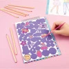 Набір включає паличку зі зручними двома кінцями: вузьким для дрібних деталей і широким для рівномірного видалення покриття з великих поверхонь. Такий інструмент дозволяє акуратно працювати зі сторінками та контролювати процес створення образу. Після скретчінгу можна доповнювати малюнки наклейками, додаючи ще більше яскравості та індивідуальності.