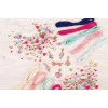 Комплект включає всі матеріали для створення багатьох комбінацій браслетів: підвіски з кристалами Swarovski, різнокольорові намистини, металеві кільця та зручний органайзер. Це робить процес творчості легким та захопливим.