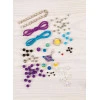 Набір включає все необхідне для роботи: еластичний шнур, атласні шнури, різнокольорові намистини, металевий ланцюжок, шарм-підвіску та органайзер для зручного зберігання матеріалів. Це робить процес творчості максимально комфортним і цікавим, а органайзер дозволяє тримати всі деталі під рукою.