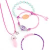 У наборі є всі необхідні матеріали для створення трьох браслетів та підвіски на шию. Включено 1 кулон з дорогоцінним каменем, 1 шарм-зірка, 1 шарм-кристал, велика гранована намистина та 49 різноманітних намистин. Для зручного складання прикрас передбачені шнури різних кольорів, еластичний шнур та карабін. Для зберігання дрібних деталей і організації робочого простору додається спеціальний органайзер, а детальна інструкція допоможе швидко освоїти всі етапи створення прикрас.