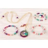У наборі є все необхідне для творчості: металевий медальйон, 60 золотих намистин, 50 пластикових намистин, 45 пластикових перлин, 30 мініатюрних перлин та декоративного каміння, унікальний шарм, плетений бавовняний шнур (1 м), прозорий еластичний шнур (1 м) та детальна інструкція. Це дозволяє дівчаткам легко і творчо виготовляти прикраси та експериментувати з різними поєднаннями матеріалів.