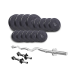 Набір складається з дисків, покритих ABS-пластиком, прямого, W-образного грифа і двох гантельних грифів. Висока якість виготовлення і довговічність деталей гарантує, що ваші тренування з даними набором будуть проходити комфортно, безпечно і з максимальною користю.