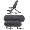 Композитні диски цього набору наповнені мінеральним композитом, який гарантує точність ваги та високу міцність. Захисне покриття з ABS-пластика додає довговічності, роблячи диски стійкими до подряпин та механічних пошкоджень. Безшумність дисків під час використання забезпечує комфорт, що особливо важливо для тренувань у домашніх умовах. Гантелі доповнює міцний гриф із текстурованим покриттям, який забезпечує надійний хват навіть під час інтенсивних вправ. Регульована вага дозволяє адаптувати набір для користувачів різного рівня підготовки.