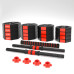 Гантелі зі змінними гирями - це класика, яка обов'язково повинна бути в кожному домашньому спортзалі. Завдяки можливості регулювати вагу вантажу дозволяє тренувати багато груп м'язів, не займаючи багато місця. Однак гантелі не можуть повністю замінити штангу. SGK - це інноваційний підхід до обладнання для домашнього тренажерного залу, що дозволяє отримати як гантелі зі змінною вагою, так і штангу в одному наборі. Вагові плити в SGK мають форму восьмикутника, тому не котяться по підлозі, а в якості опори для віджимань можна використовувати дві гантелі.