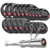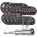 До набору входить хромований прямий гриф для штанги і чавунні диски з гумовим покриттям, їх високоякісний чавун покритий товстим шаром міцної гуми, що гарантує комфорт використання, захищає обладнання і підлогу від пошкоджень і приглушує звуки під час падіння. Висока якість виготовлення і довговічність деталей гарантує, що ваші тренування з даним набором будуть проходити комфортно, безпечно і з максимальною користю.