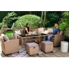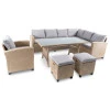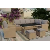 Бажаєте провести час з друзями чи родиною на природі? Набір меблів Rossano від Di Volio - буде чудовим вибором! Він ідеально підходить не лише для саду, а й легко розміститься на великому балконі чи терасі. Набір складається з 6-місного кутового дивану, крісла, великого столу та 2-х пуфів. Великий диван можна розкласти на два окремих 3-місних. Завдяки використанню якісного техноротангу, плетені меблі Rossano забезпечать вам естетичну насолоду, комфорт та зручність! Диван, крісло та пуфи оснащені м'якими зручними подушками. Теплий колір техноротангу надає інтер'єру додаткового затишку.